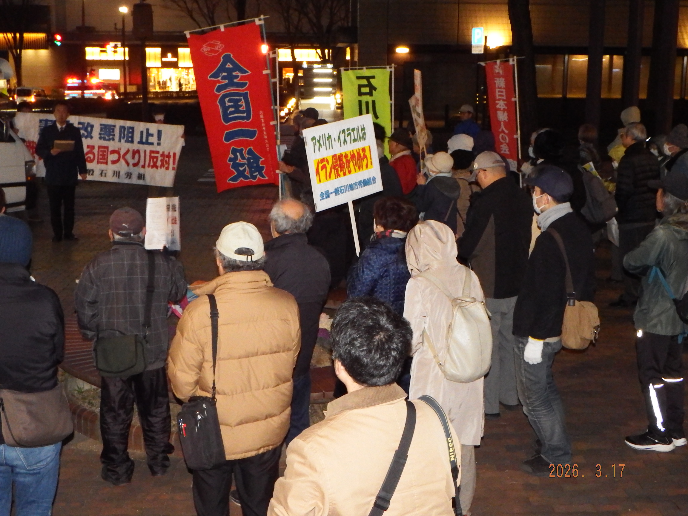 かつて安倍政権が例示したように、ホルムズ海峡機雷封鎖を存立危機事態と認定した場合、高市首相は、トランプ大統領からの自衛隊の出動要求をきっぱりと断ることができるのでしょうか?ベトナム戦争、アフガン戦争、イラク戦争では、自衛隊参戦を拒む盾は、憲法第9条でありました。若者や未来ある子や孫の世代を決して戦地に立たせてはなりません。「武力で平和は築けない」この歴史の教訓を思い起こしましょう。平和を求める国際世論に連なり、憲法改悪を阻止し、戦争に向かう動きを止めるために地方からともに声を挙げましょう。
